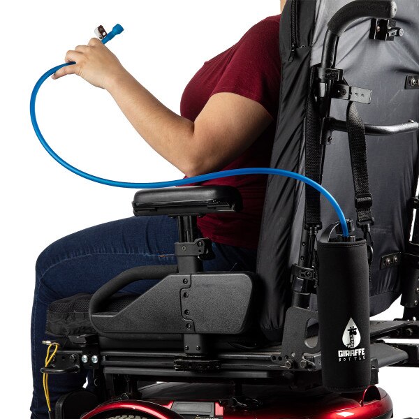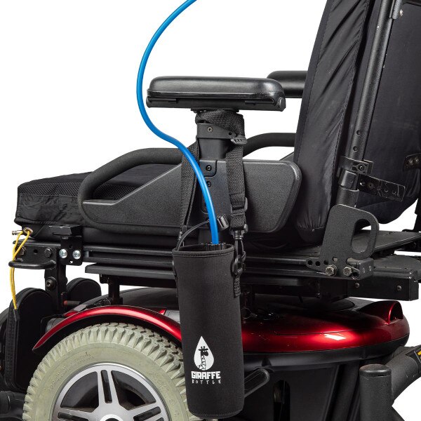 - AVAILABLE WITH BOTTLE CARRIER OR HOLDER - This variation of the kit is comes with the Giraffe Bottle Neoprene Bottle Carrier, which can sling over a wheelchair, bed rail, shoulder, etc., for a more on-the-go experience. Also available is the Giraffe Bottle Aluminum Bottle Holder, which has an adjustable clamp that easily attaches to round tubing on wheelchairs, power chairs, bed railings, and more.